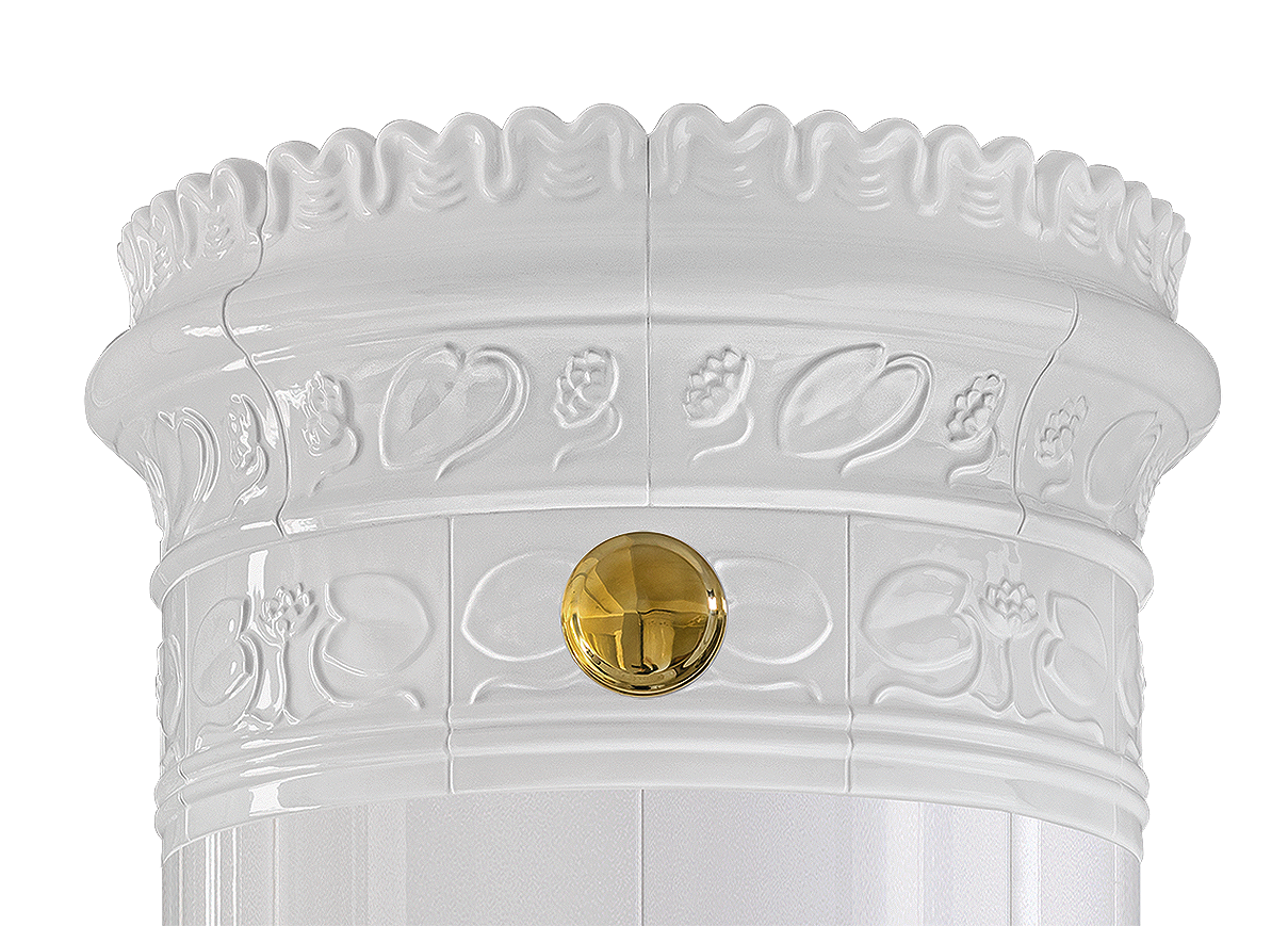 Helt rund fristående kakelugn, be om offert.